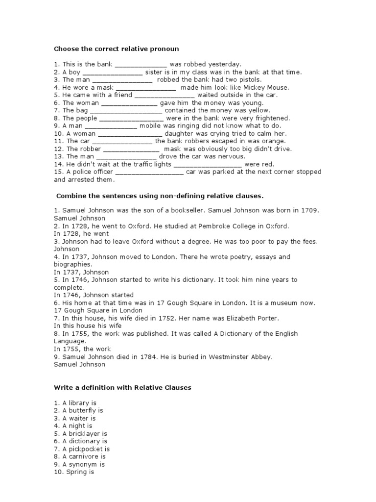 Relative Clauses Worksheets And Online Exercises