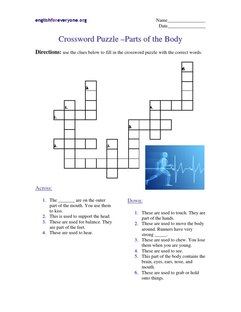 Crossword Puzzle Parts Of The Body